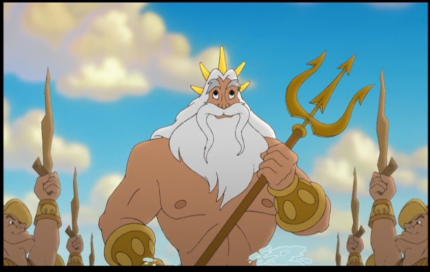In the Disney movie The Little Mermaid and the movie's following sequels, how many points/spikes are to be found on King Triton's crown? Also, what color is the crown itself?